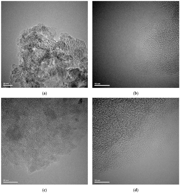 图1:活性炭1(a,b)和活性炭2(c,d)活性炭的tem显微照片。
